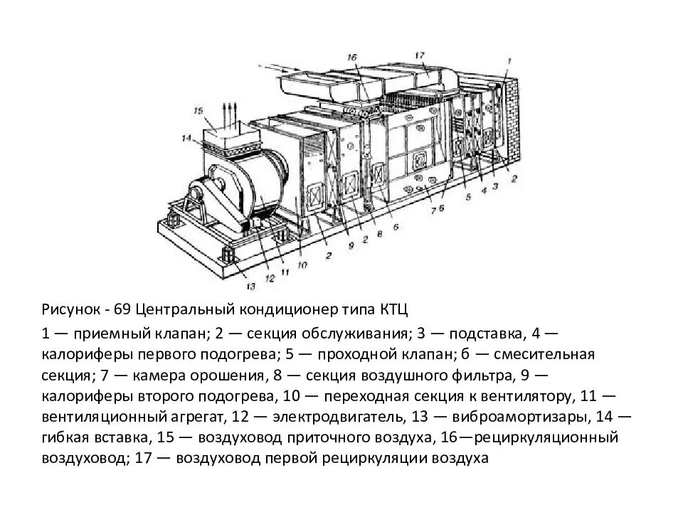 - Центральный кондиционер – многосекционный блок, осуществляющий забор и подготовку воздуха.