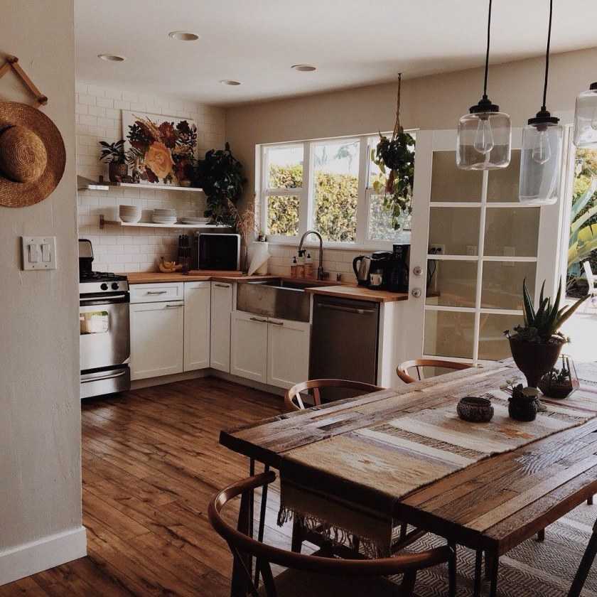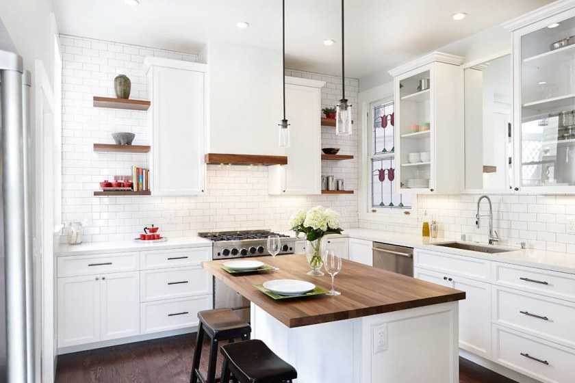Если позволяют размеры помещения, в центральной части кухни можно поставить стол остров. Это конструкция из многослойной фанеры, досок, бруса выполняет много полезных функций на территории кулинарного царства. Для полноценных обеденных посиделок такой стол будет неудобен, но постоять у него не грешно с чашечкой ароматного кофе. На полках внутреннего пространства самодельного островного стола можно расположить кухонную бытовую технику и посуду.