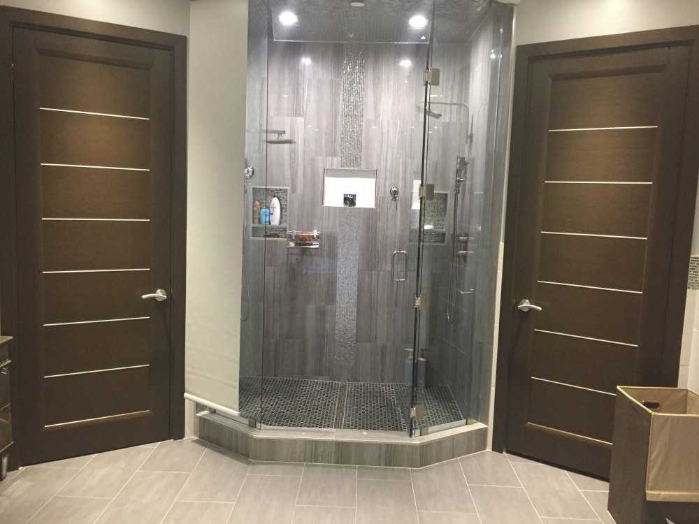 Стеклянные двери должны быть только из высокопрочного стекла со специальной защитной пленкой — при механических ударах она не позволит разлететься осколкам по всей комнате.