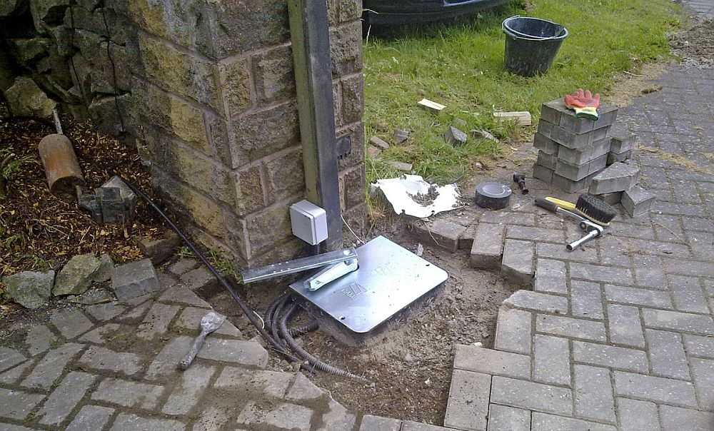 Электропроводку и сигнальные кабели укладывают в металлический гофрированный шланг и закатывают под слой бетона. Антенну и блок дистанционного управления перед установкой на плату управления автоматических распашных ворот рекомендуется проверить на кратность и правильность срабатывания логики отрывания– закрывания створок. Отдельным пунктом проверяется максимальное удаление, на котором сигнал с пульта способен открывать воротную конструкцию.