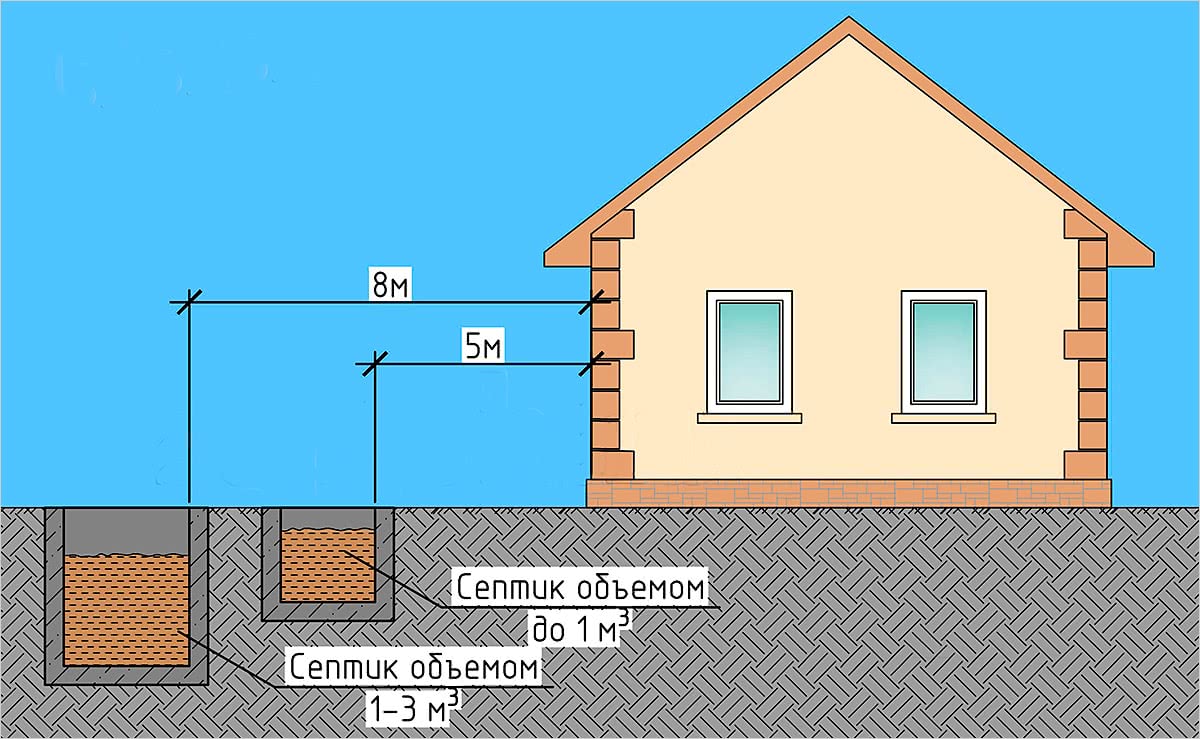 Согласно санитарным нормам септики и канализационные колодцы должны быть удалены как минимум на: