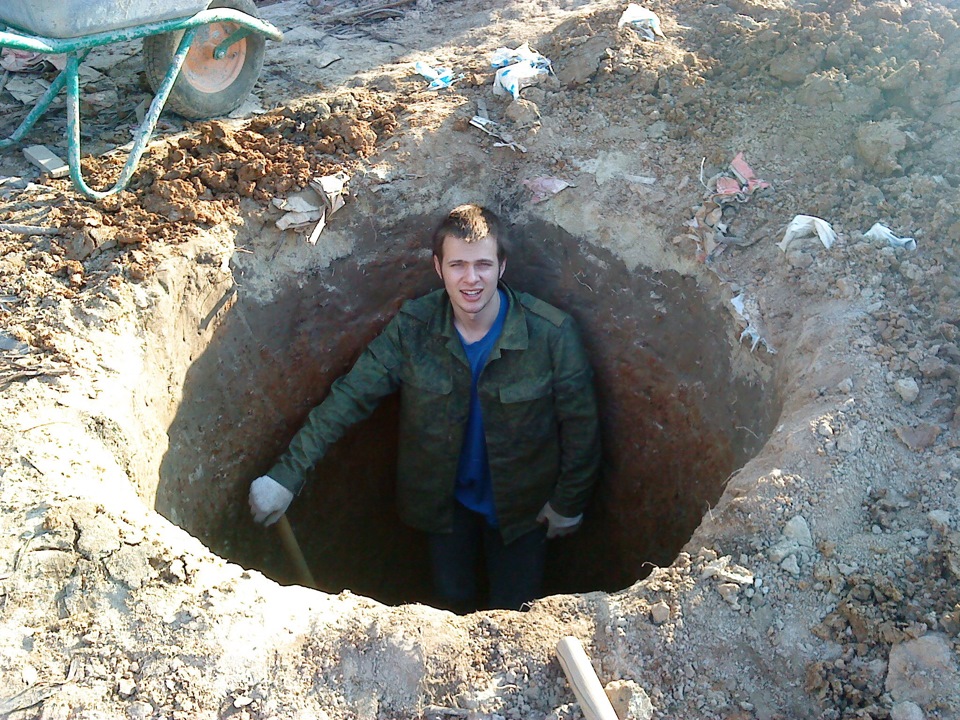 - Выкопайте яму ниже точки промерзания почвы на участке.
