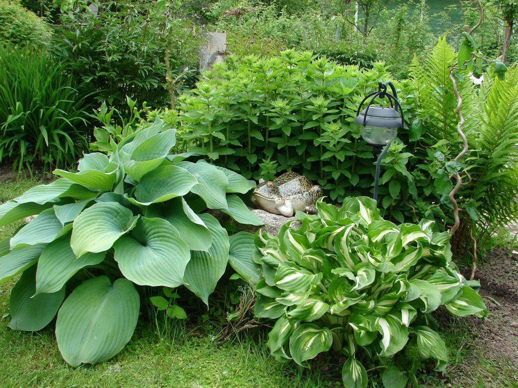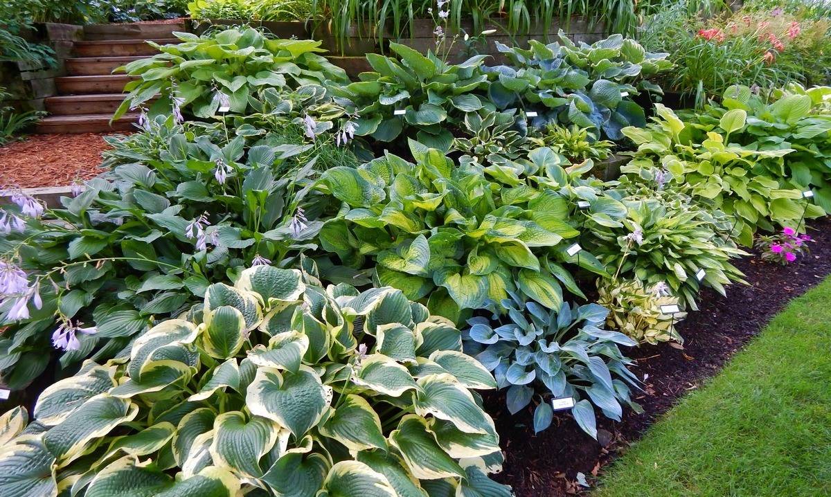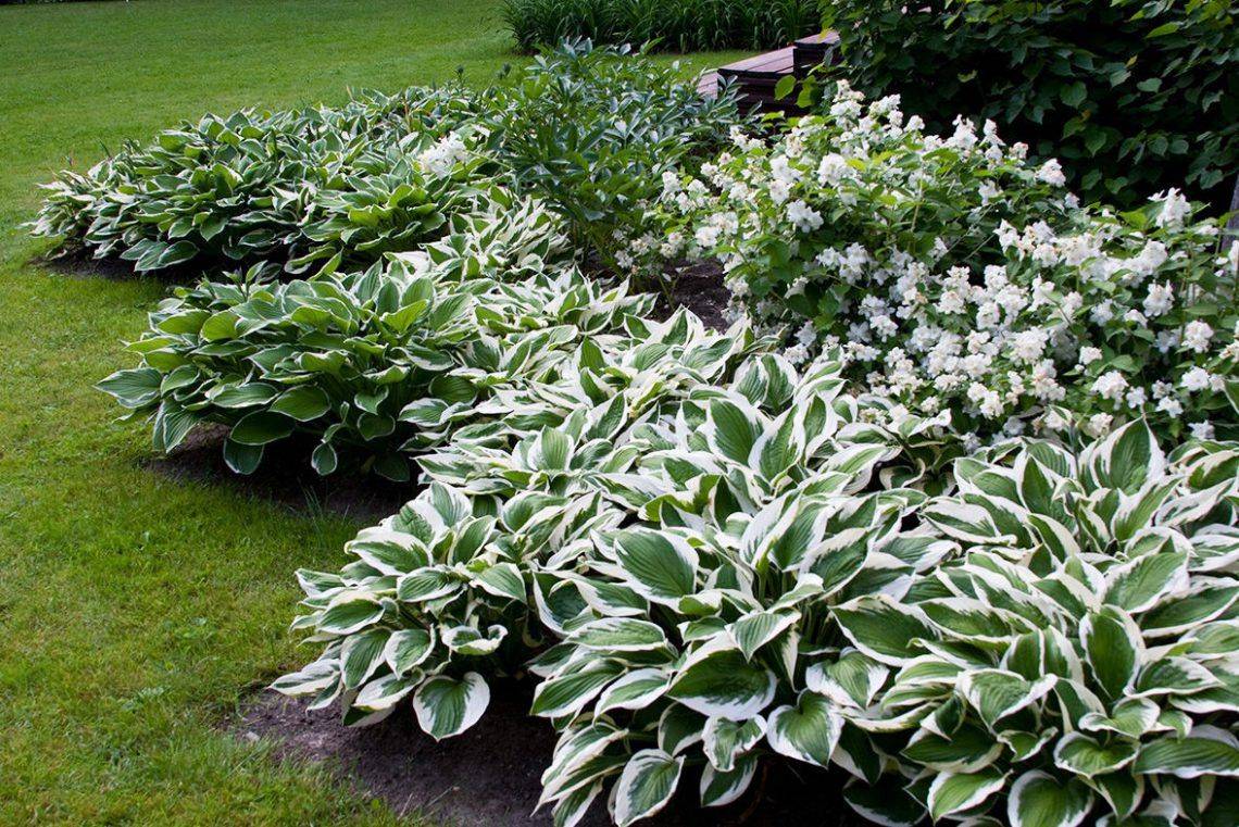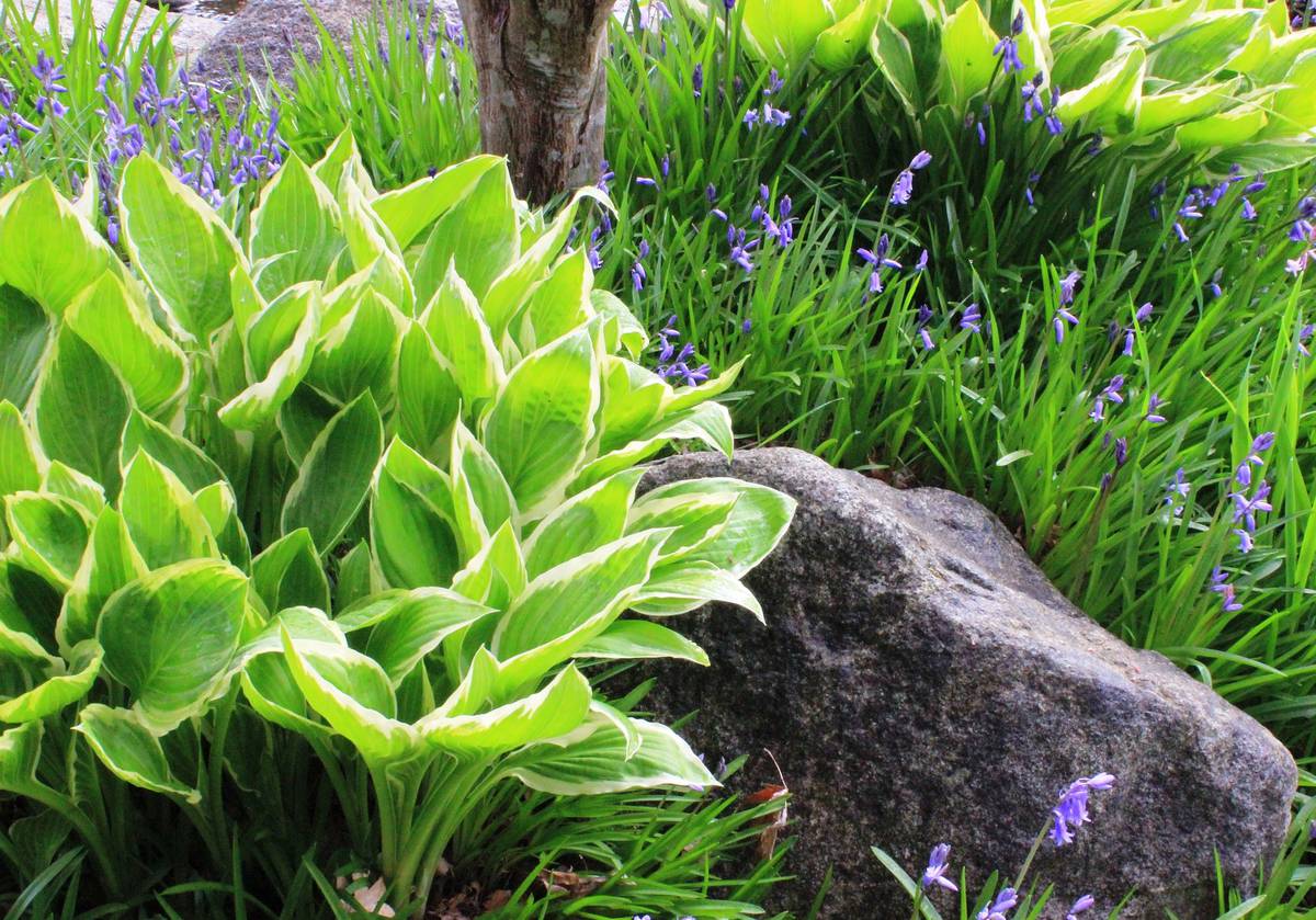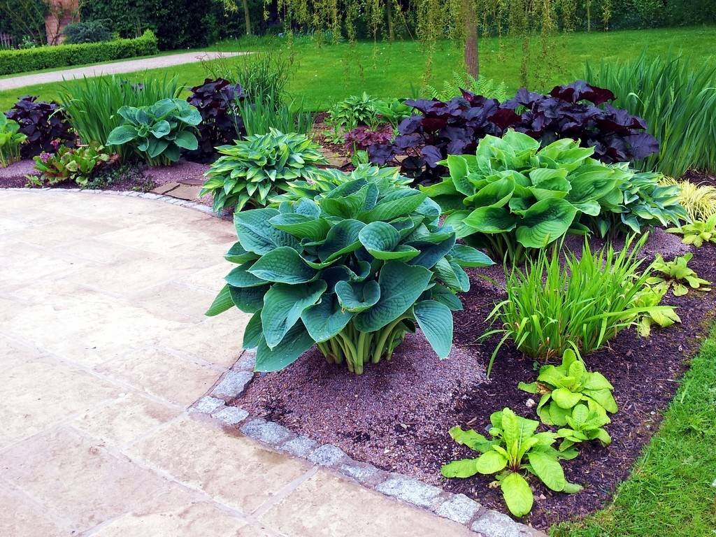 Хосты смотрятся очень хорошо под лиственными деревьями. Обширная тень для них считается очень благоприятной. Вокруг самой грядки с декором можно высаживать газон, предварительно позаботившись о том, чтобы он не переселился к хостам.