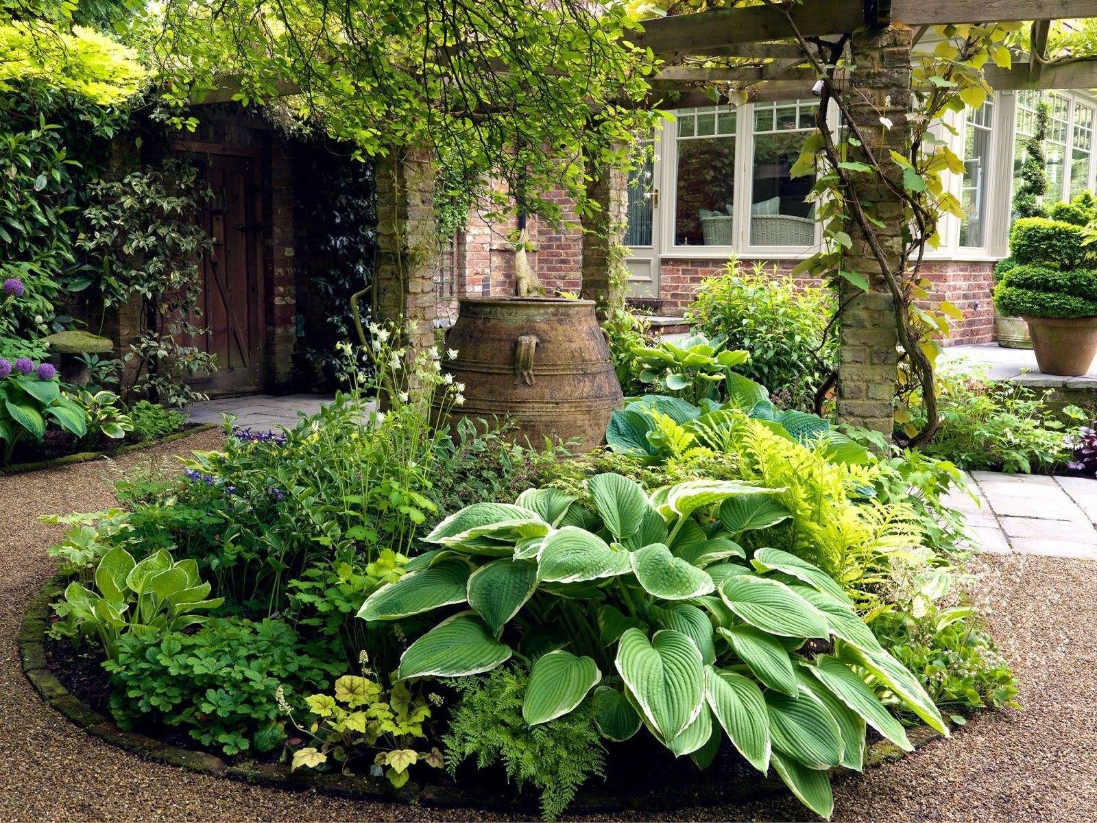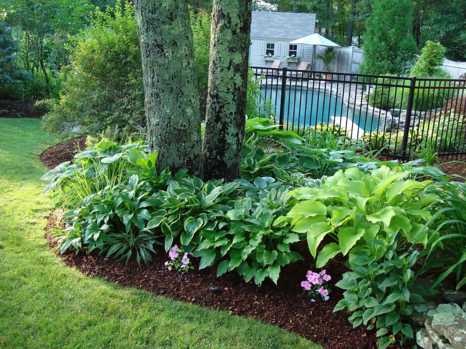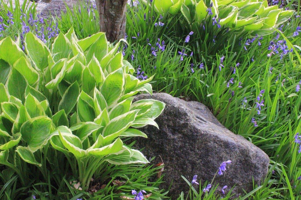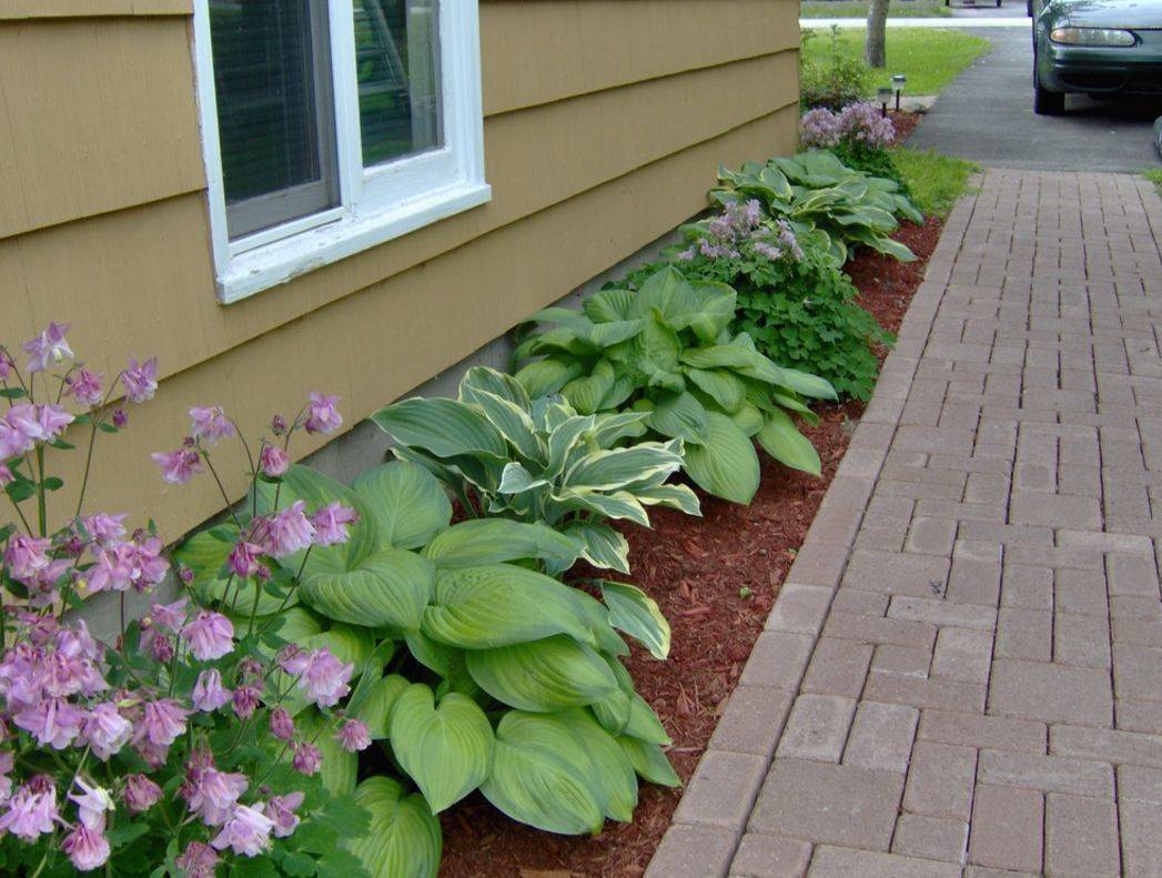 Хосты смотрятся очень хорошо под лиственными деревьями. Обширная тень для них считается очень благоприятной. Вокруг самой грядки с декором можно высаживать газон, предварительно позаботившись о том, чтобы он не переселился к хостам.