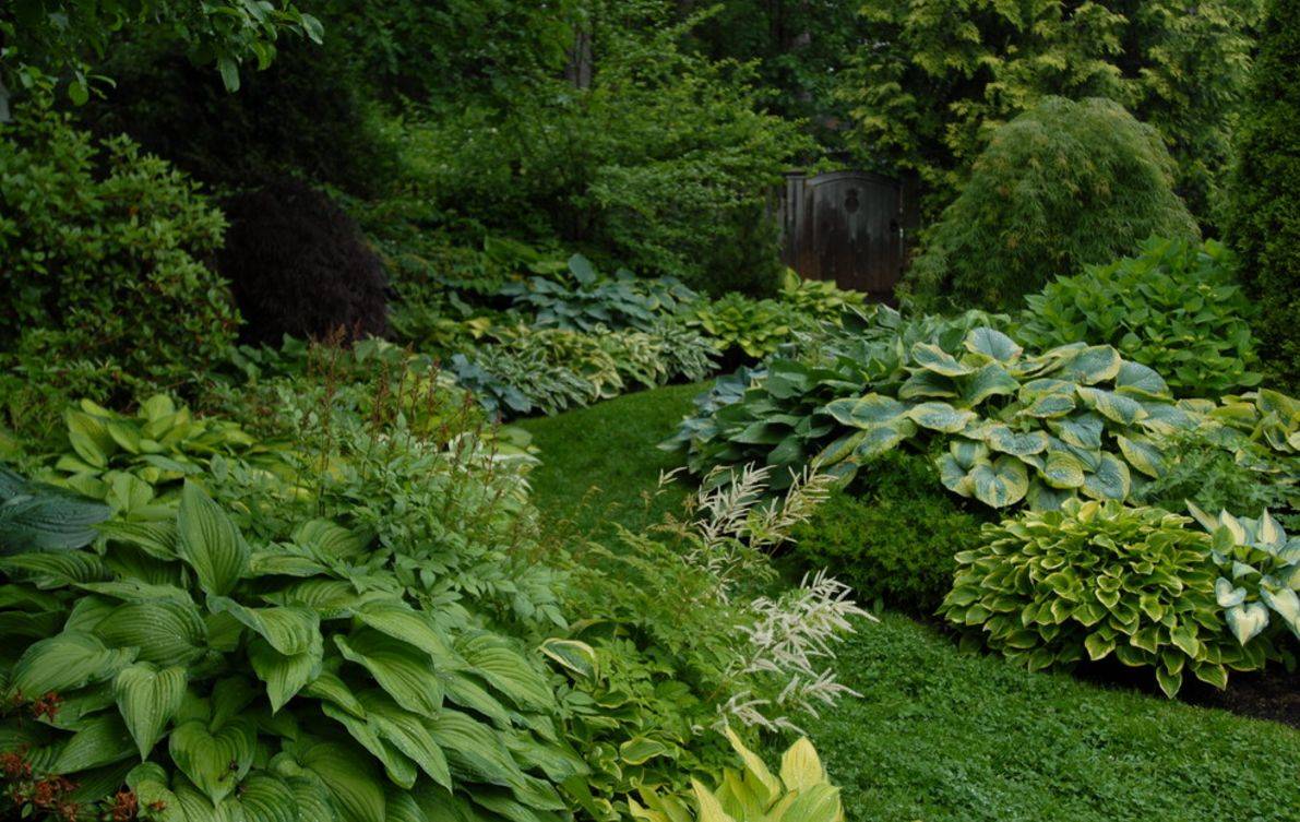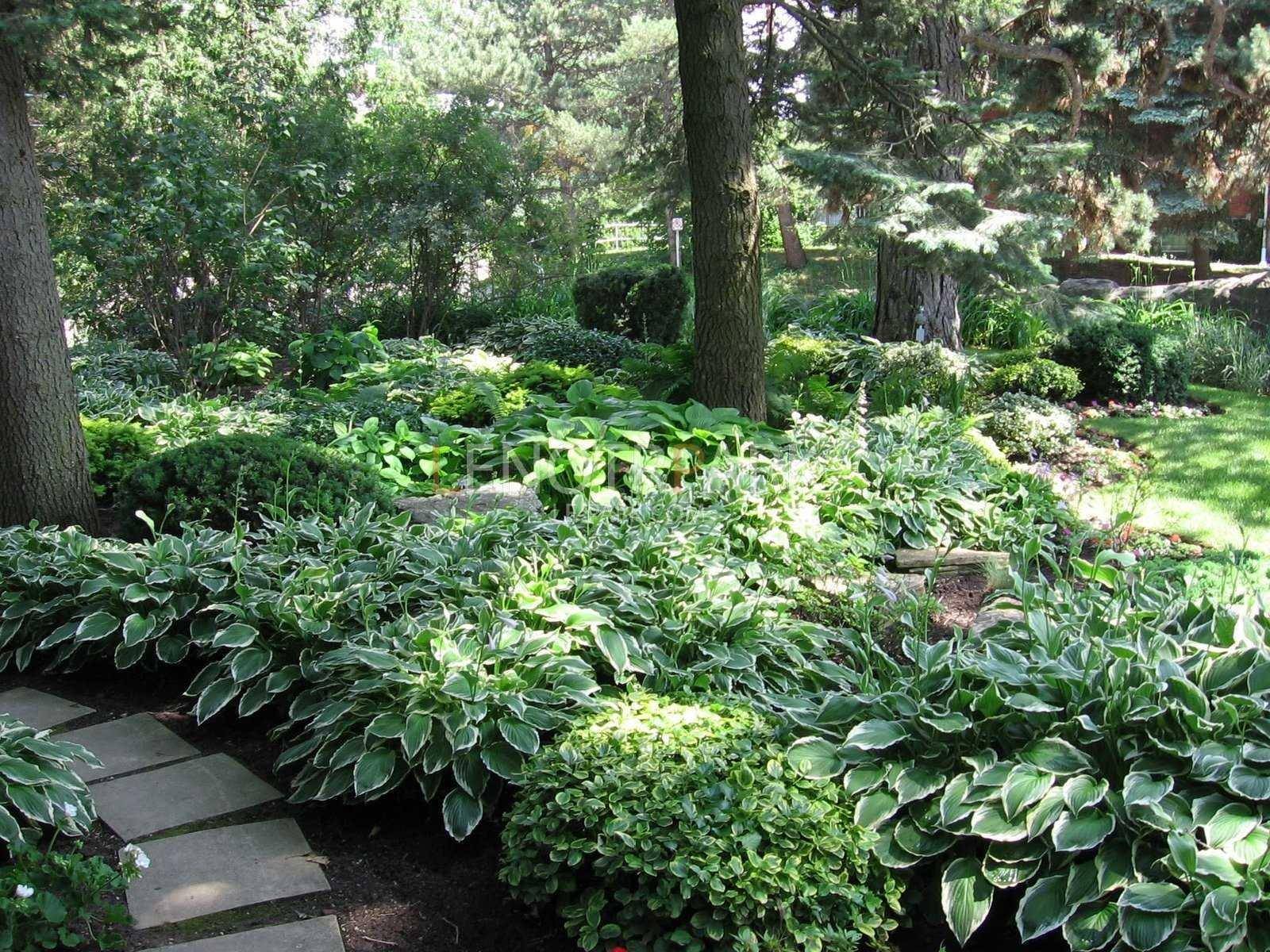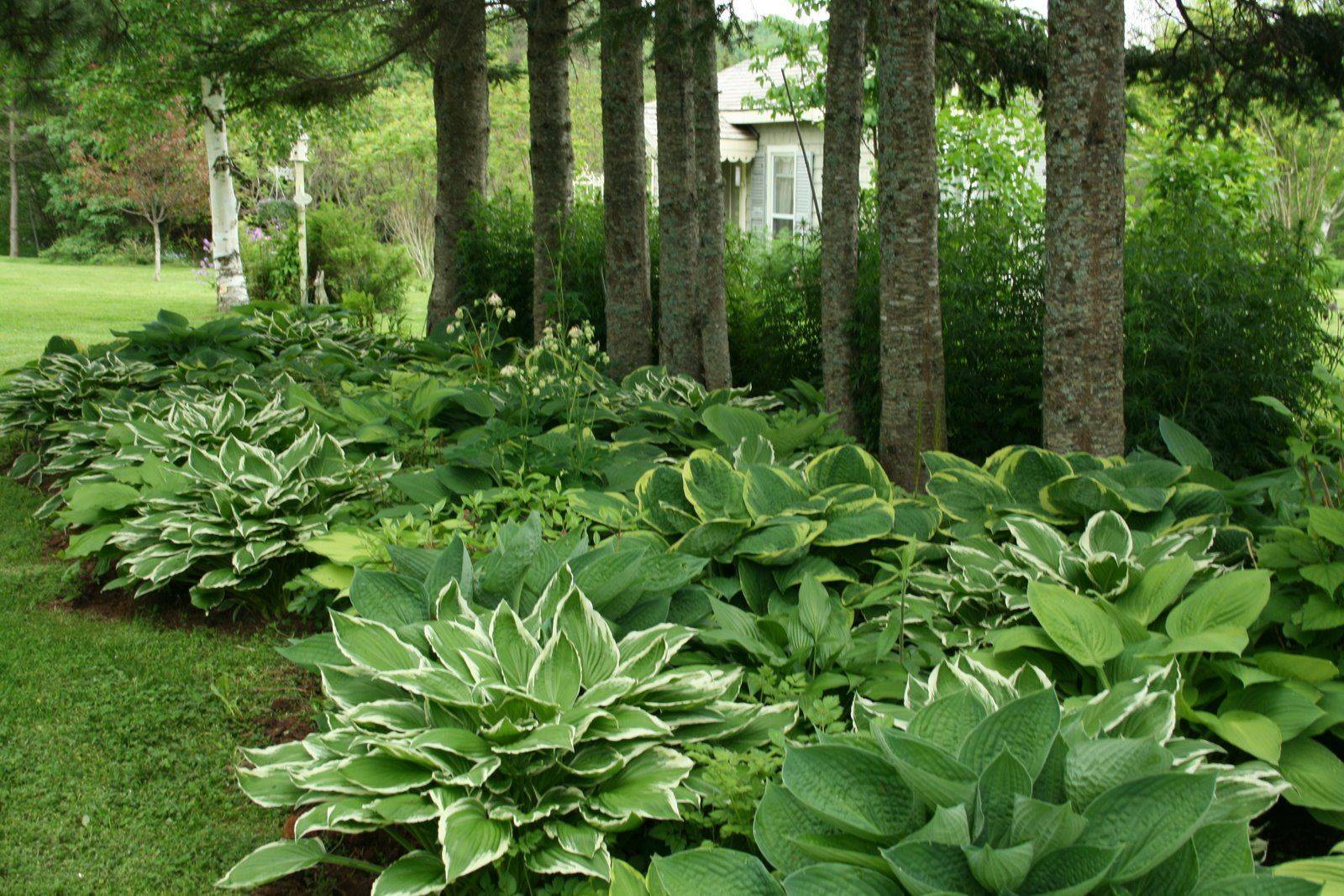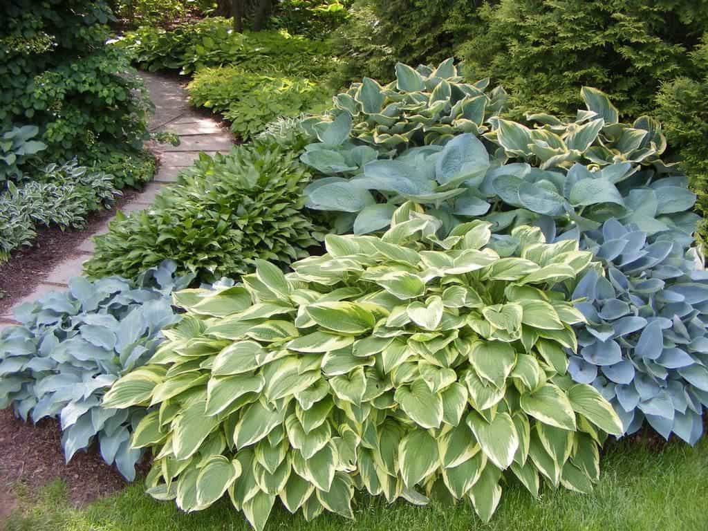 Хосты смотрятся очень хорошо под лиственными деревьями. Обширная тень для них считается очень благоприятной. Вокруг самой грядки с декором можно высаживать газон, предварительно позаботившись о том, чтобы он не переселился к хостам.