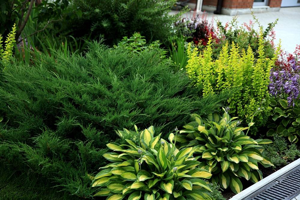 Высадку скелетных растений, хвойников, производят начиная с заднего плана или центра и располагают их на необходимом удалении, учитывая дальнейший рост и пышность крон.