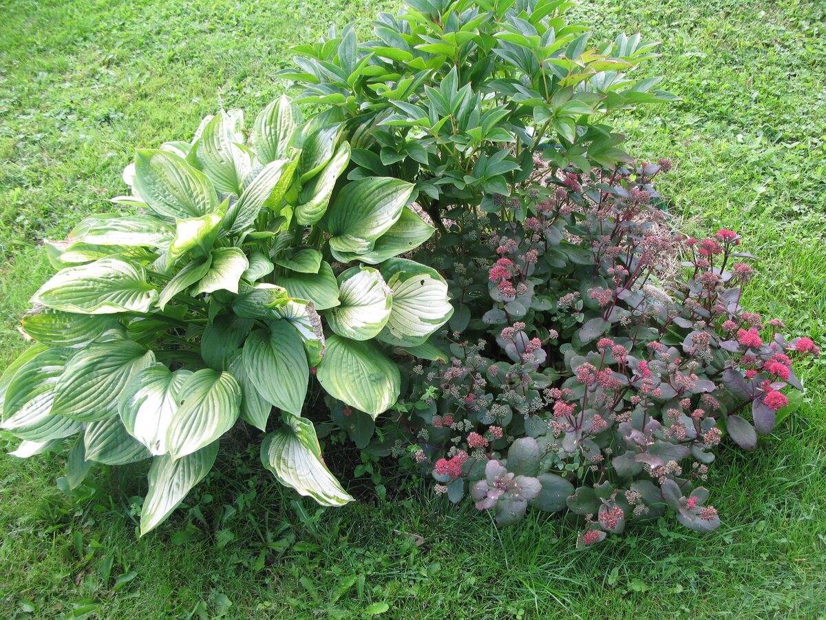 Весьма привлекательно хоста смотрится также в комбинации с геранью садовой, пионами. Нередко ее сочетают с ирисами, розой, гортензией и лилейниками в самых разных композициях.