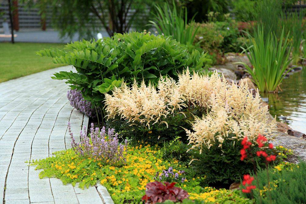 Сложностей по уходу в ландшафтном дизайне за астильбой не существует. Использование на участке многолетника разноплановое. Будет ли культура присутствовать в многокомпонентной композиции из цветов, красоваться на фоне вечнозеленых растений или выступать единственным участником на клумбе ландшафтный, дизайн будет смотреться органично во всех случаях.