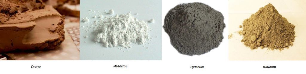 По виду вяжущего сырья смеси для печей подразделяются на цементные, гипсовые, глиняные, смешанные, известковые и т. д.