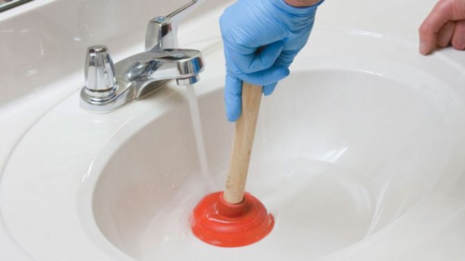 С использованием вантуза – простейшего сантехнического инструмента — очистка труб проходит легко и безопасно. Работа проходит так:
