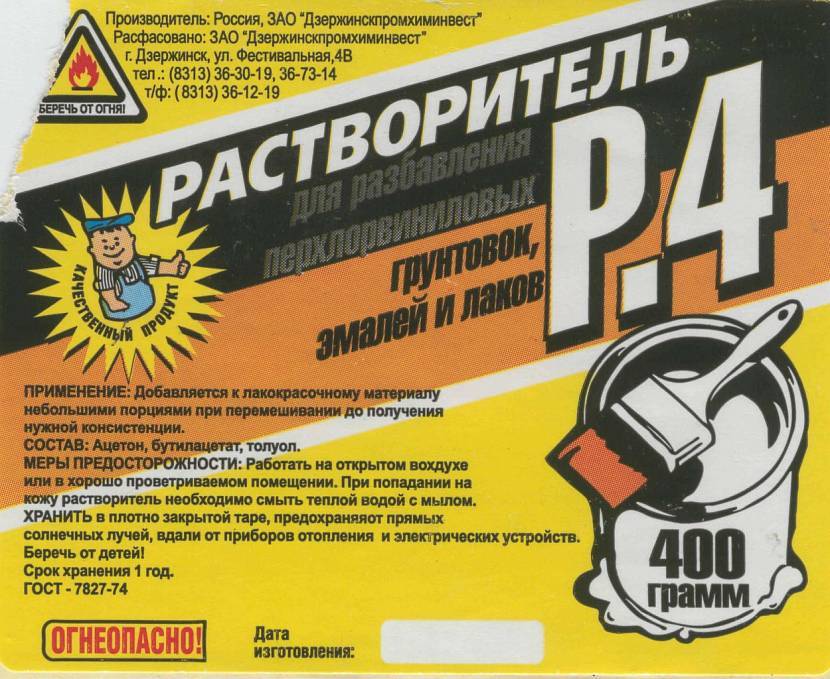 Средство Р 4, которое изготовлено согласно ГОСТу 7827-74, включает в свой состав летучие растворители органического типа: