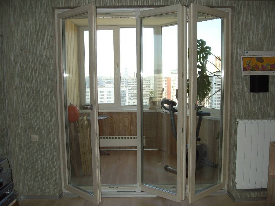 По своей конструкции напоминает ширму, которая при закрывании створки накладывается друг на друга. Такие раздвижные пластиковые на балкон в квартире в отличие от других моделей имеет все подвижные части, благодаря чему проем на балкон можно открыть на максимальную ширину.