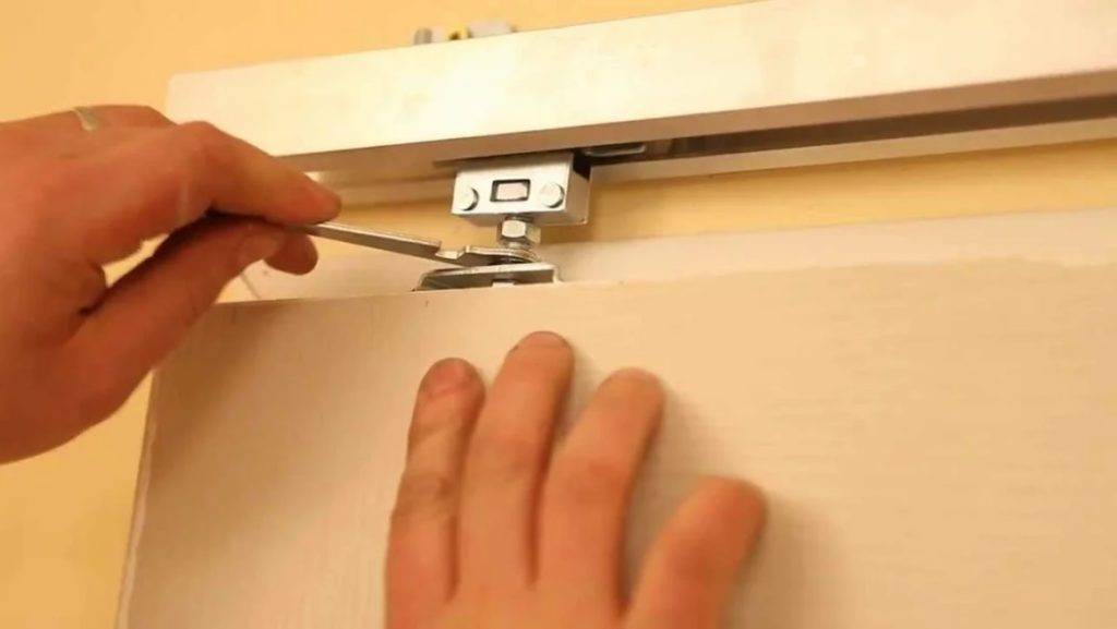 Если сверху и снизу створки стоят двойные ролики, то сначала откручивают ограничители. Дверное полотно просто выкатывают из направляющей. Раздвижные системы премиум класса оснащены доводчиком. Крепление механизма откручивают только от полотна. Доводчик остаётся висеть на дверной коробке.