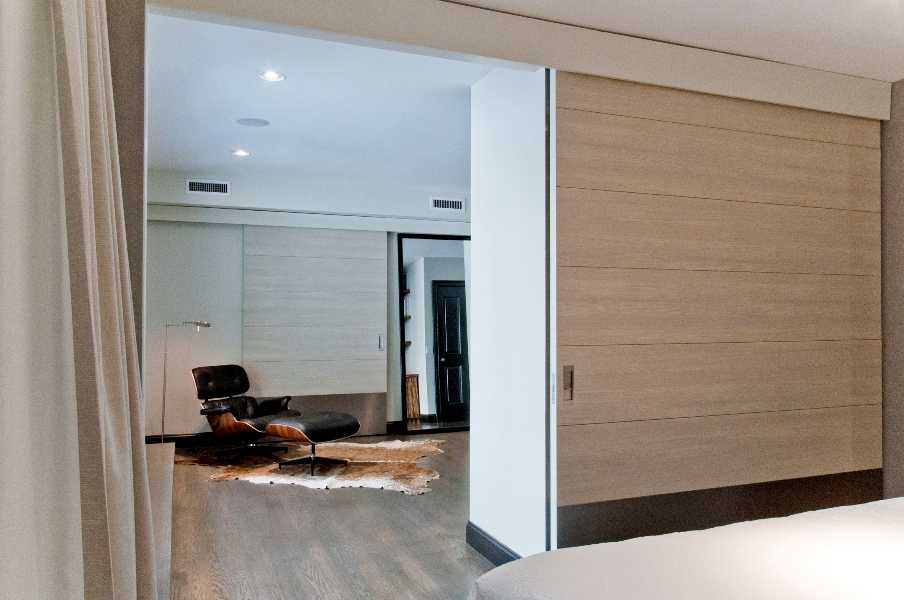 - Для правильной работы конструкции требуется, чтобы возле дверей было свободное место. Если его не предусмотрено дизайном, то потребуется встраивать дверь в стену, а это возможно только при снесении и новой установке межкомнатной перегородки.