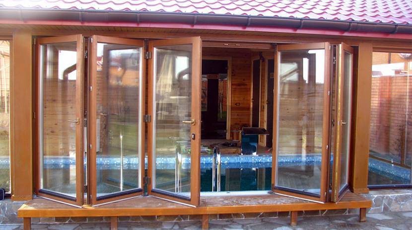 - для веранды не занимают много места при открывании, они не будут мешать предметам, которые расположены в помещении или растениям, окружающим террасу.