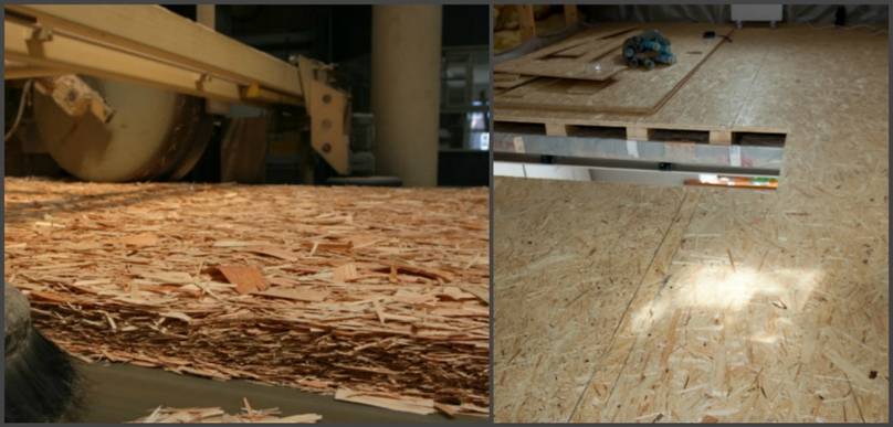 Мелкофракционные опилки применяются для производства ДСП, МДФ, ДВП и других аналогичных листовых материалов. Более крупная стружка используется в так называемых ориентированно-стружечных плитах. Наименование произошло от английского «oriented strand board» – OSB или ОСБ, если читать аббревиатуру по-русски. Изделие представляет собой многослойный лист, состоящий из смеси: