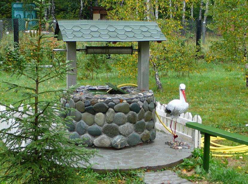 Камни – необходимый элемент возле любого источника воды. Камнем обкладывают бетонные кольца, тропинку к колодцу. Булыжники подходят лучше всего.