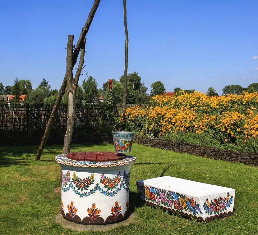 - Возле колодца нужно посадить цветы (бархатец, петунию, циннию);