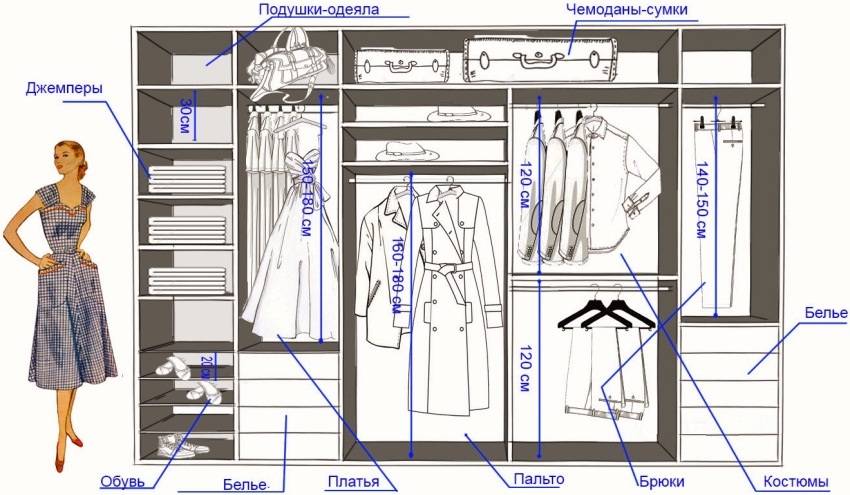 Важно грамотно организовать пространство, чтобы было удобно доставать вещи, примерять их, и снова убирать в шкаф