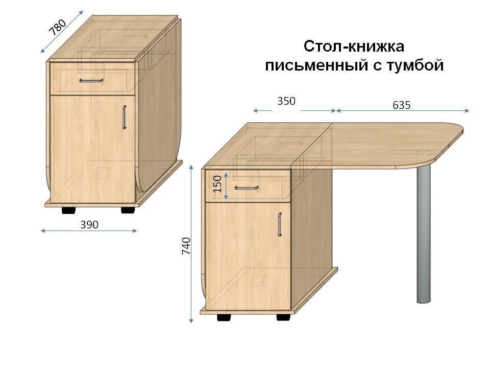 Мобильная раскладная мебель нередко дополняется ящиками, полками, что позволяет улучшить функциональность изделий. Производителями представлены разнообразные модели: книжки обеденные, приставные, письменные, журнальные. Каждая из них имеет свои достоинства, недостатки, а среди общих особенностей следует выделить большой выбор цветовой гаммы, мобильность и эргономичность. При изготовлении учитываются анатомические особенности потребителей, поэтому габариты столов-книжек четко определены, все зависит от их вида.