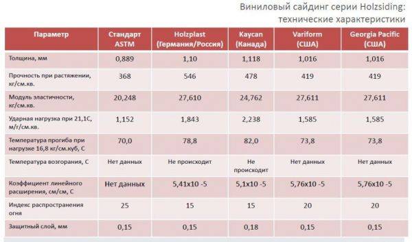 В таблице приведены размеры панелей винилового сайдинга разных видов.