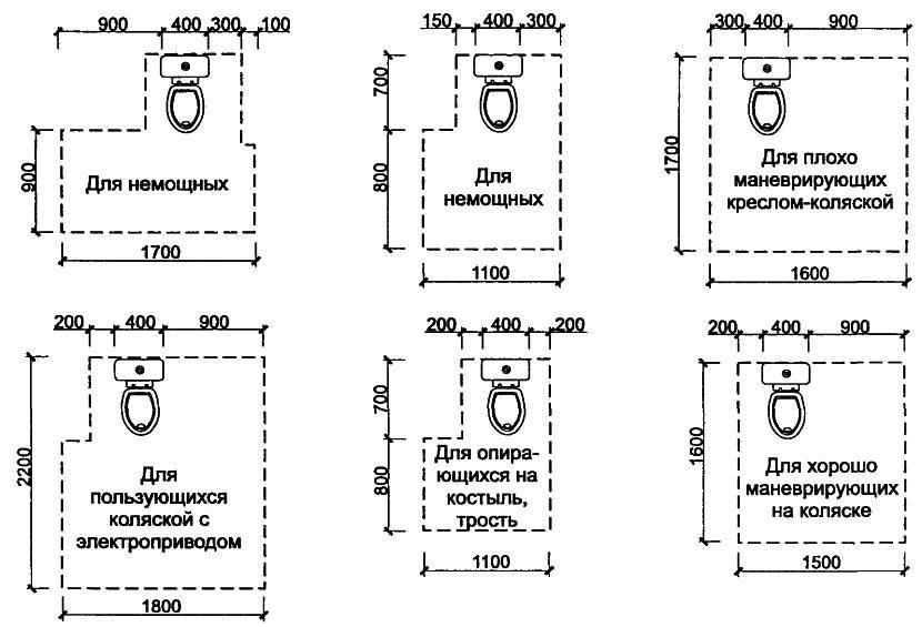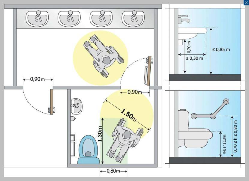 Размеры туалетных комнат в общественных уборных для инвалидов