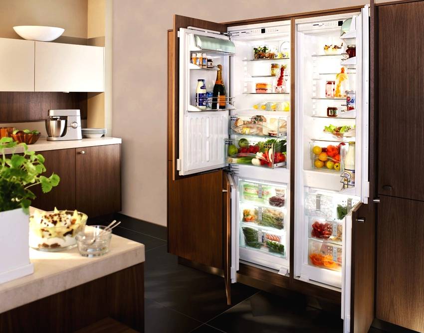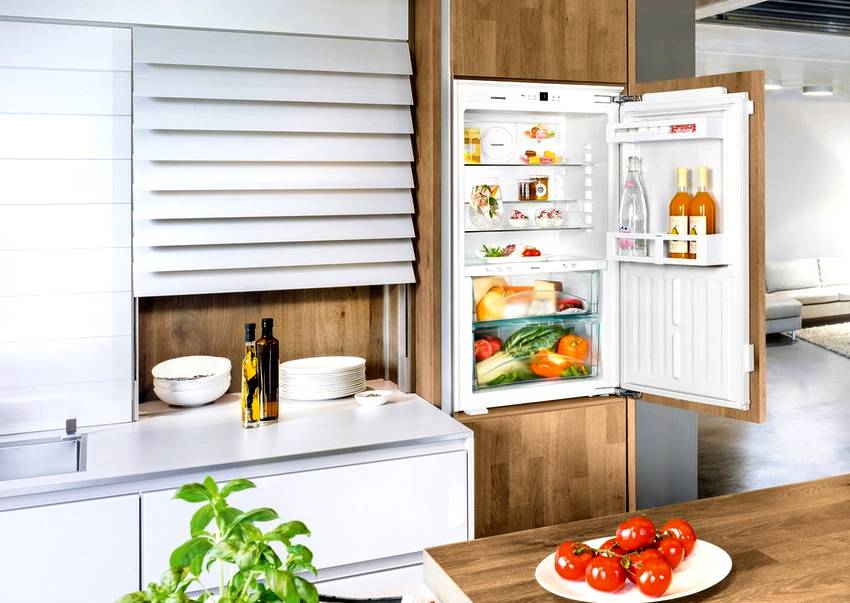 - Встраиваемые холодильники. Их монтируют в кухонную мебель и в этом случае они вообще не занимают лишнего пространства.