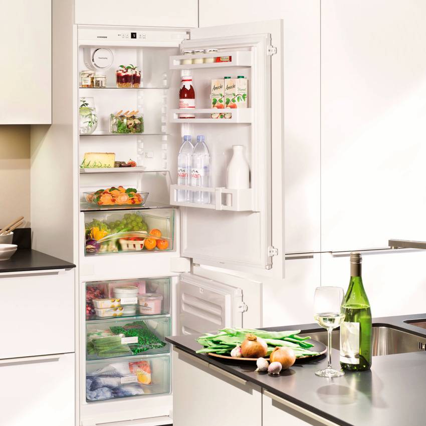 Выбирая встраиваемый холодильник, необходимо обращать внимание не только на габаритные размеры, но и внутренний объем. Литраж холодильника зависит от его прямого предназначения и количества членов семьи