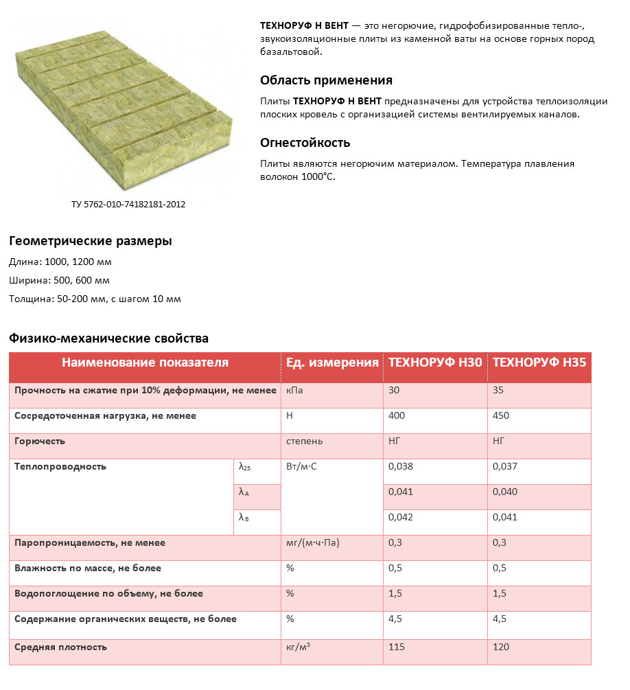 Размер стандартны – 120х60х50 см. Материал может иметь толщину 4-25 см. Серия Техновент предназначена для фасадов, Роклайт – для мансард, полов и перекрытий, Базалит – для кровель и чердаков.