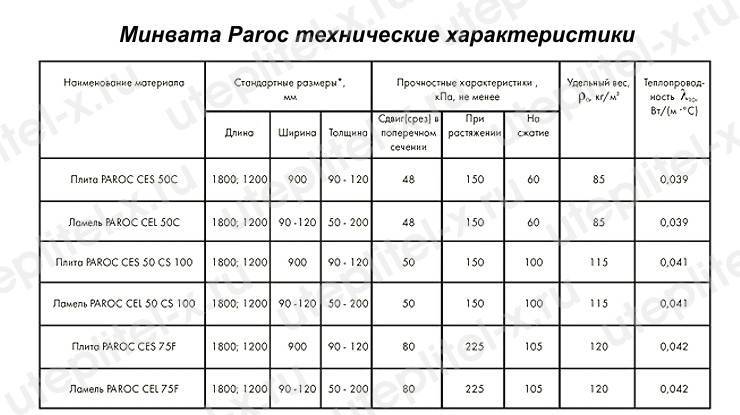 При выборе утепляющего материала нужно учесть, что размеры готовой минваты, поставляемой в плитах, отличаются в зависимости от производителя. Отечественные пользователи отдают предпочтение нескольким маркам.