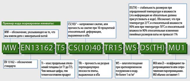 Маркировка минваты Производители указывают на упаковке наименование, размеры, дату выпуска утеплителя, предел огнестойкости, толщину и тип облицовки. По цифрово-буквенным обозначениям можно понять значения: