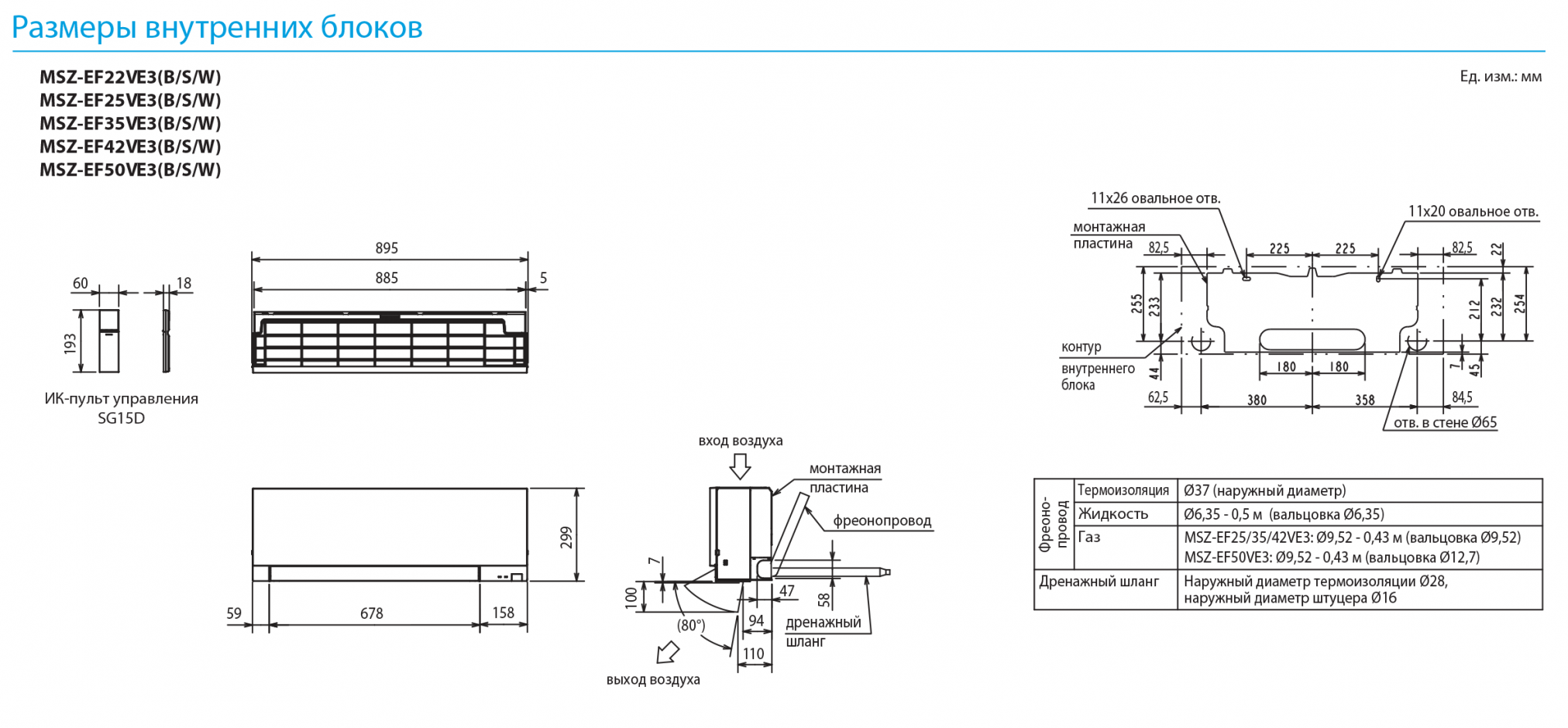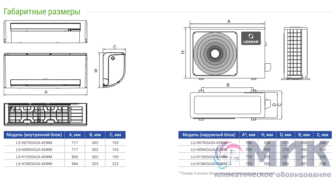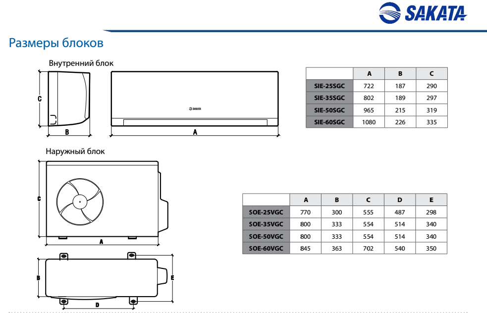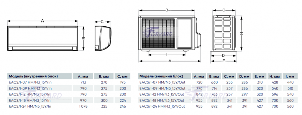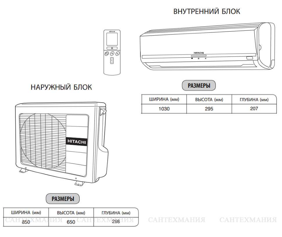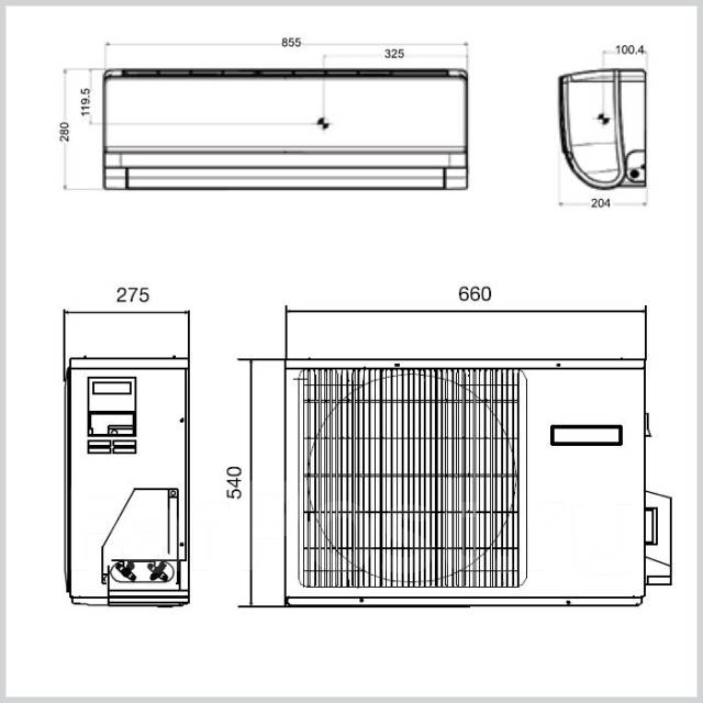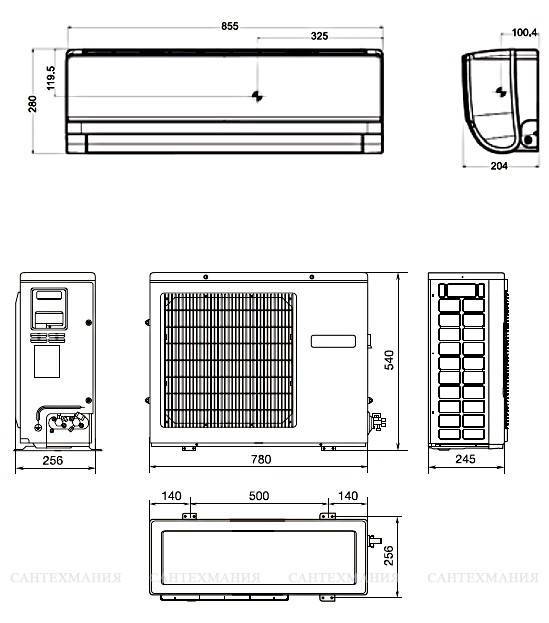 Средние показатели компактных, бытовых кондиционеров по критериям ширина/высота/глубина от этого производителя составляют 65x25x18 сантиметров для внутреннего модуля и 70x40x31 см для наружного блока.