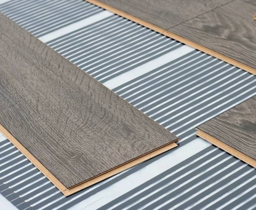 - Далее укладывается чистовое напольное покрытие. Любое, подходящее для использования в системе полов с подогревом.