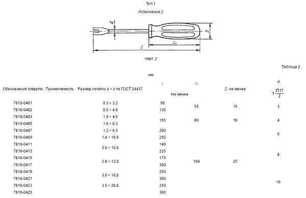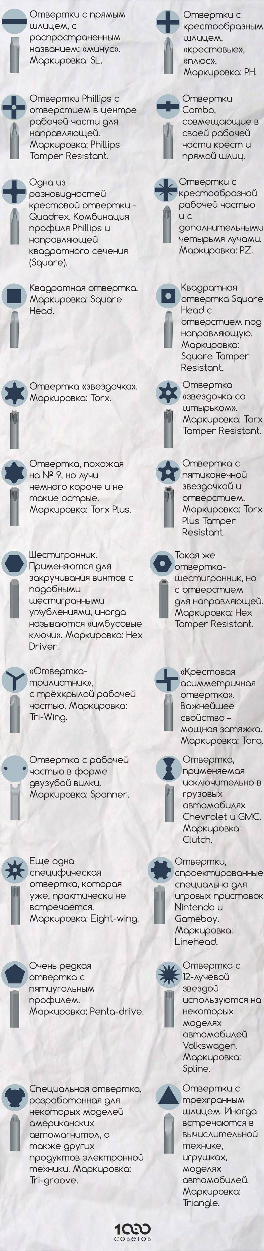 Параметры крестовых отверток