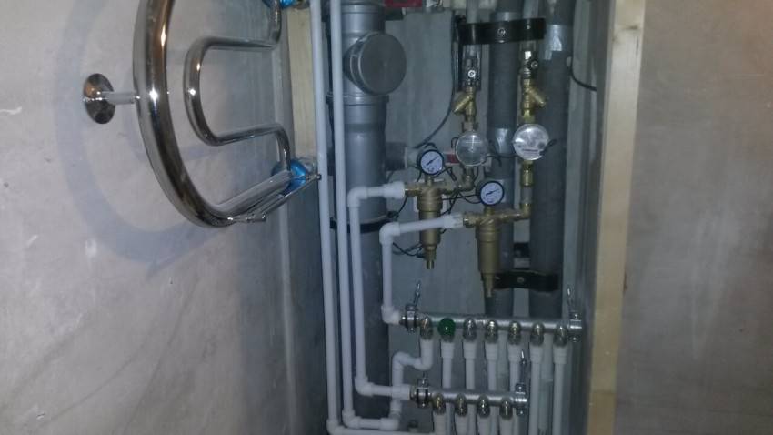 - Трубы прокладывают к коллектору. Желательно не проводить трубы сквозь стены, а также перегородки, а если это приходится делать, заключайте их в стаканы.