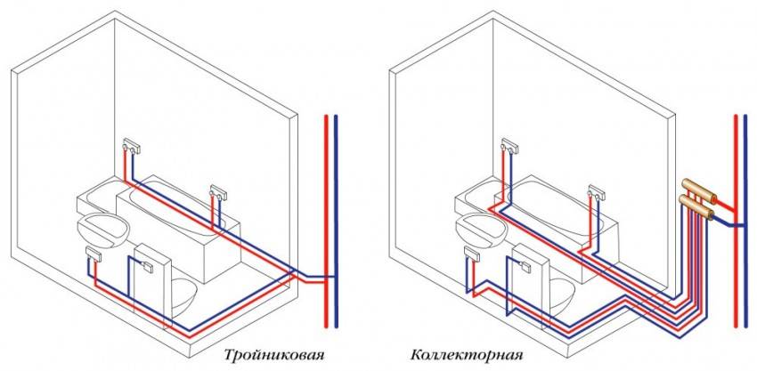 - Коллекторная (параллельное подключение к общей магистральной трубе всех сантехнических устройств).