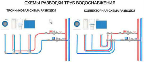 Разводка труб водопровода может быть выполнена одним из двух способов.