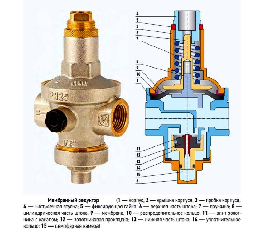 Регулятор давления воды мембранный — довольно надежное, неприхотливое в эксплуатации устройство с широким диапазоном регулирования давления в водопроводах. Кроме того, эти устройства имеют высокую стоимость. Однако у диафрагменных редукторов есть такие недостатки, как: большое количество подвижных элементов и сложность процедуры замены.