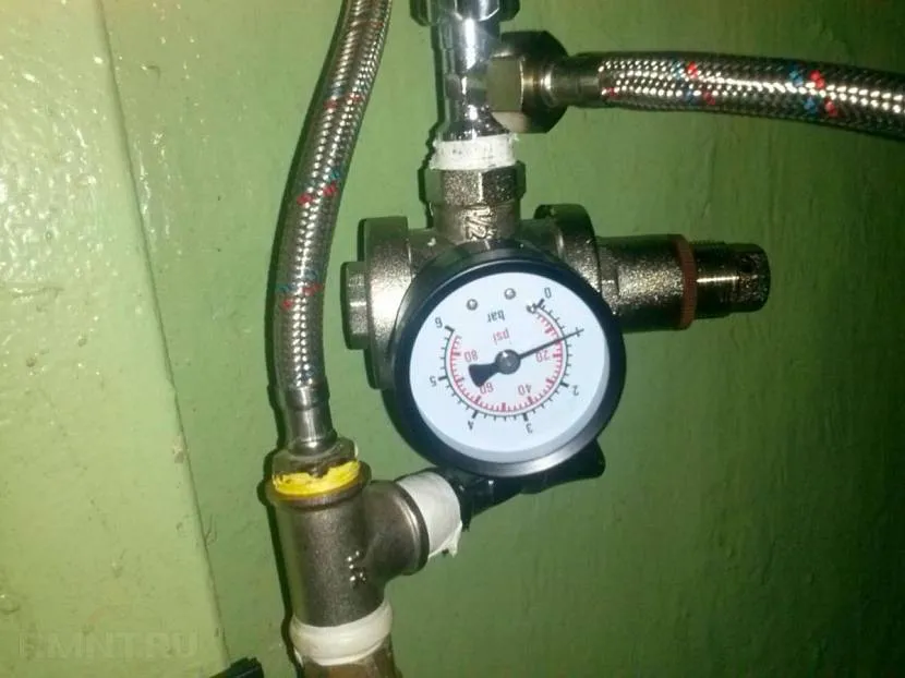 Подключите воду и проведите тестовый запуск. Процесс монтажа редуктора одинаков как для квартиры, так и для частного дома.