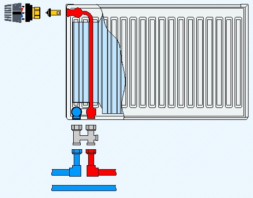 Диагональное подключение радиатора.