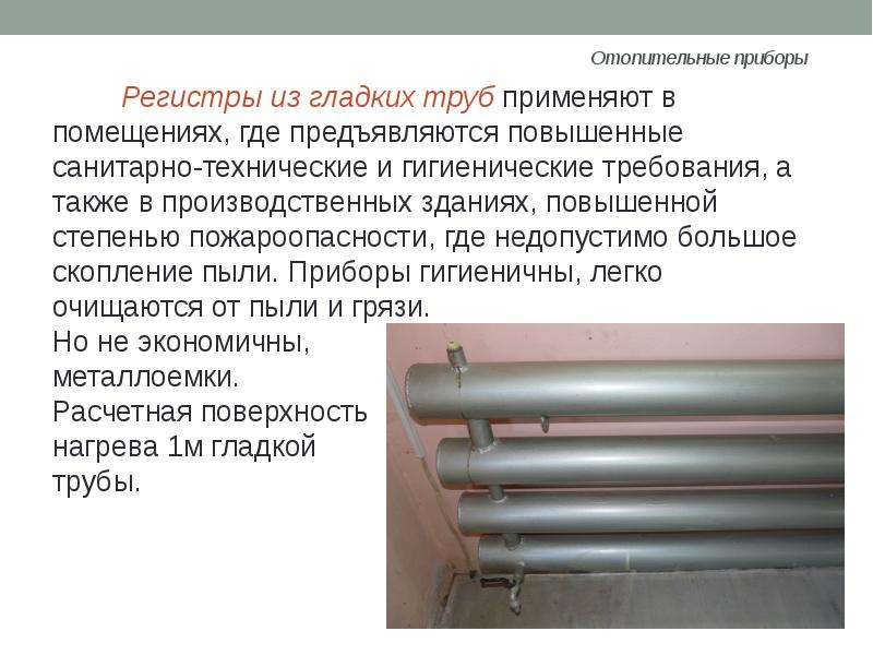 Единственным недостатком этого устройства является малопривлекательный внешний вид и громоздкость. Именно по этой причине регистры отопления нашли свое применение при обогреве производственных помещений и вспомогательных строений (гаражей, теплиц и т.д.)