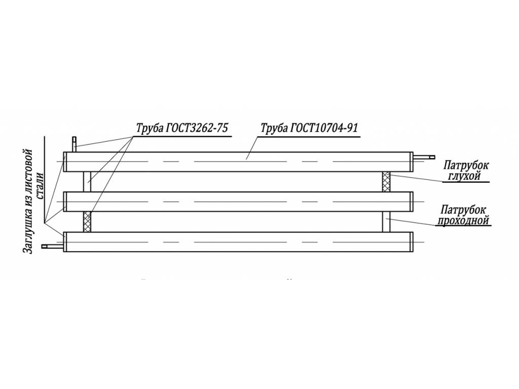 Совсем редко встречаются сделанные из нержавеющей трубы — для приличной мощности требуется большое количество труб, а сколько стоят изделия из нержавейки, вы имеете представление. Если и делали их, то, наверное, давно. Используют еще «оцинковку», но работать с ней сложнее — варить не получится.
