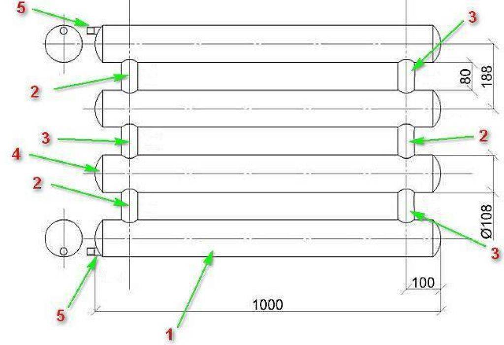 Получается, что нужно определить диаметр труб таким образом, чтобы теплоотдача регистров отопления имела достаточный уровень для обогрева помещения определенной площади. Это если есть возможность выбирать, а если регистр варится из того что есть в наличии, то возможно, придется немного изменить конструкцию.