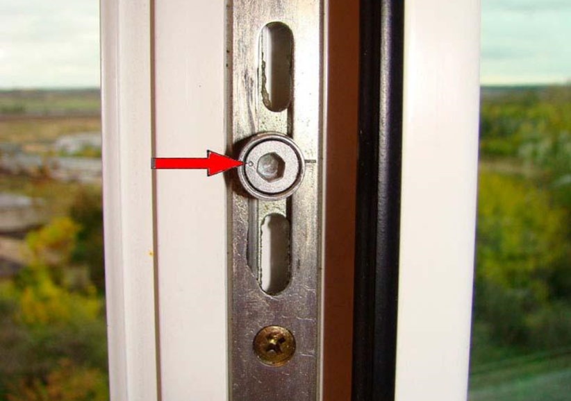 Она имеет отверстие под шестигранный ключ и контрольную точку (риску). В зависимости от положения этой точки прижим может быть сильнее или слабее. Регулировка пластиковых дверей и регулировка пластиковых окон очень похожи.