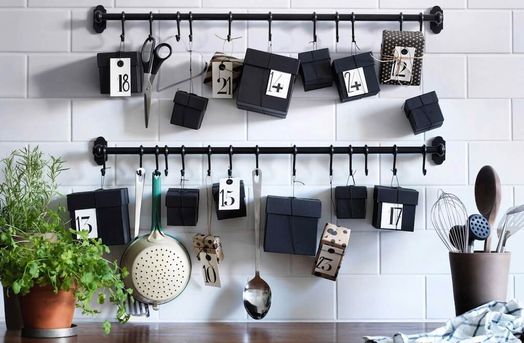 С одной стороны, было бы логичным разместить на крючках половники, поварешки и шумовки рядом с плитой. Но так они будут постоянно забрызганы каплями жира, поэтому правильнее их повесить у рабочей зоны.