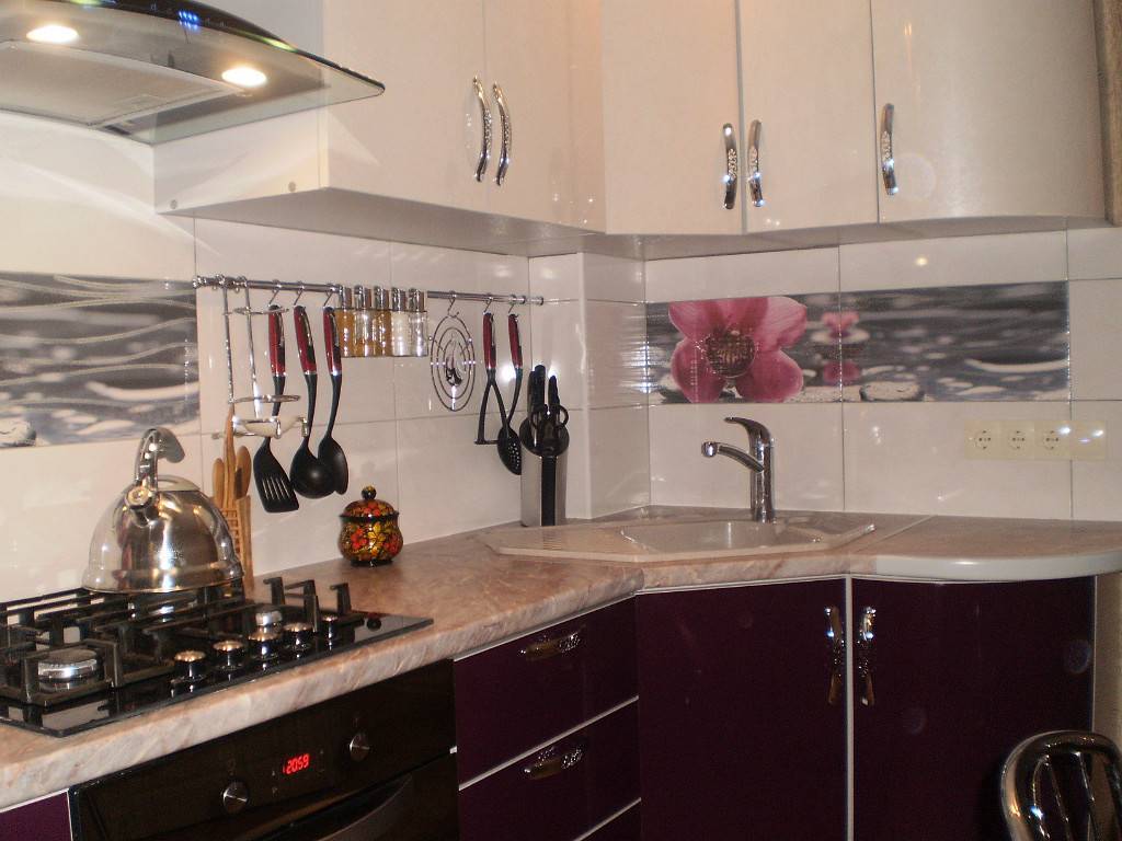 В малогабаритной кухне множество вывешенных на рейлинги предметов, создадут впечатление бедлама, поэтому, тут рационально выносить на стену только самые необходимые вещи, скажем, сушку для посуды или набор лопаточек.