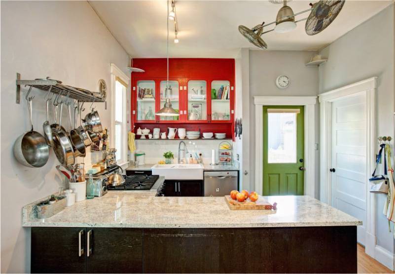 - различные, половники, поварешки и скалки повесьте над вашей обычной рабочей поверхностью (см. фото);