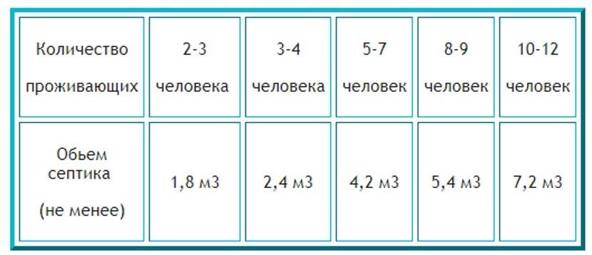 | Количество людей | До 10 | Большие септики с множеством секций и полями фильтрации. |