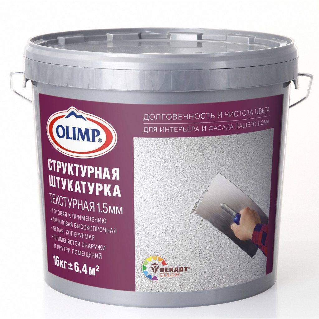 Вяжущие вещества этого вида смесей – акриловые синтетические смолы. Основа раствора – водно-дисперсная эмульсия. В неё, кроме наполнителя, добавляются вещества придающие необходимые свойства – биоциды, антипирены и др. Структурная акриловая смесь поставляется в готовом виде в ведёрках.