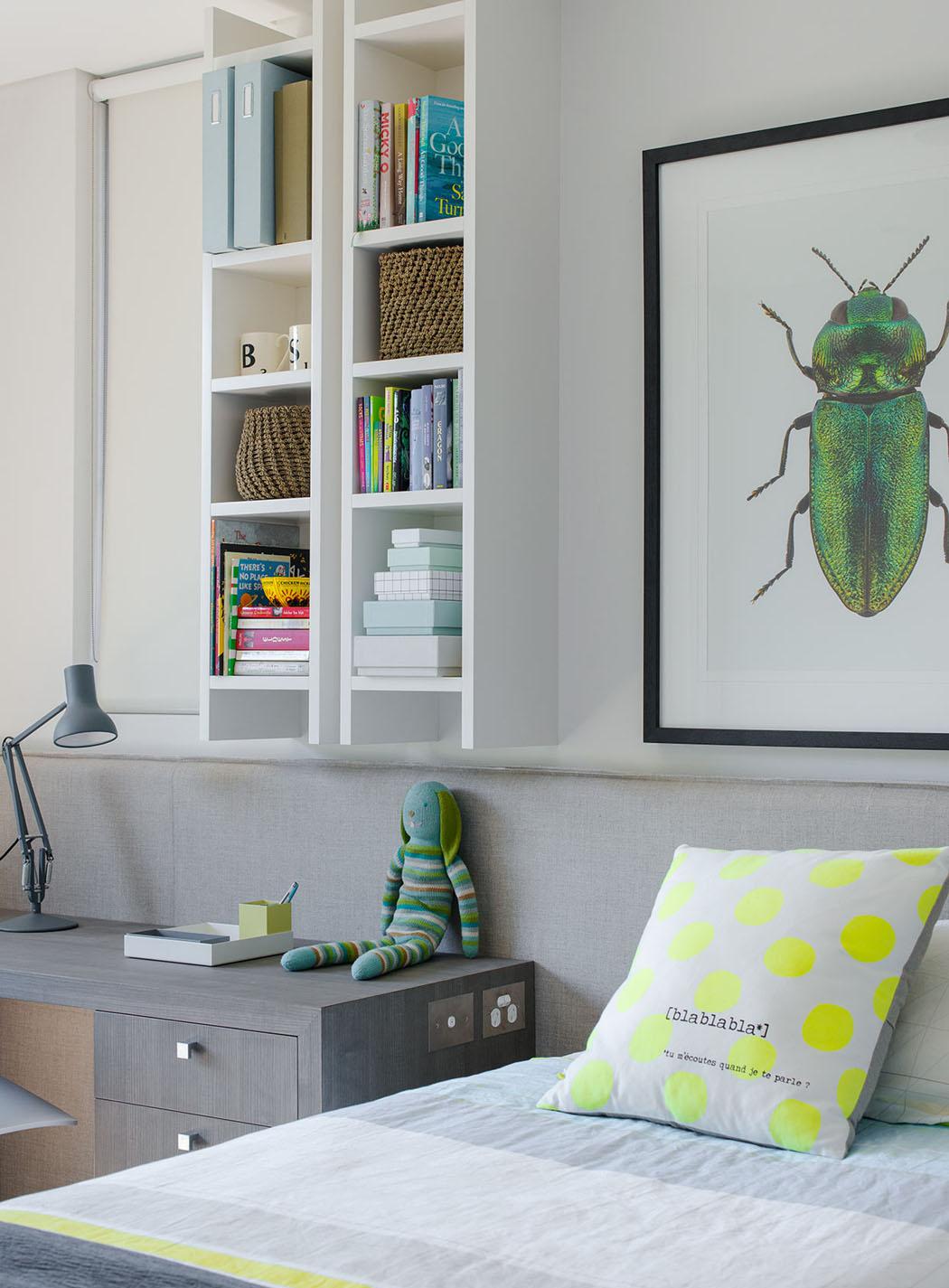 Эконом дизайн детской комнаты со стеллажом